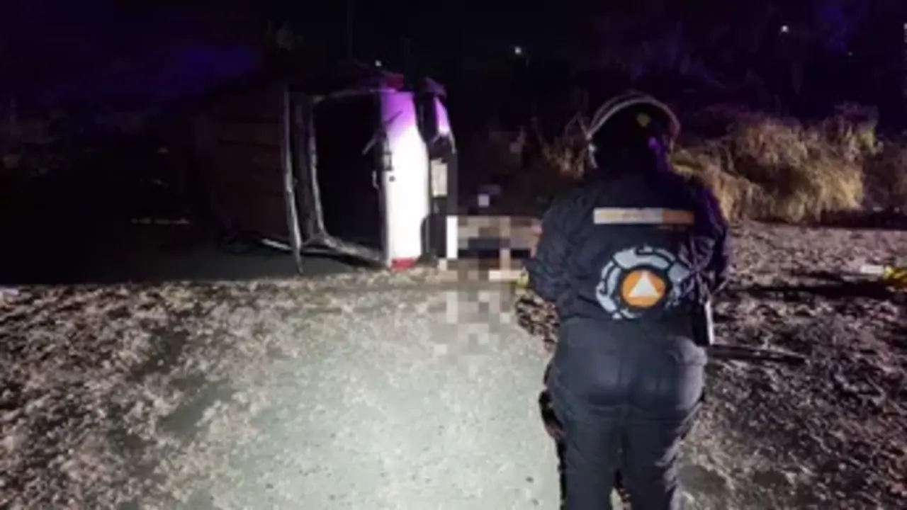 Conductor vuelca en Pesquería dejando una mujer fallecida y una joven lesionada